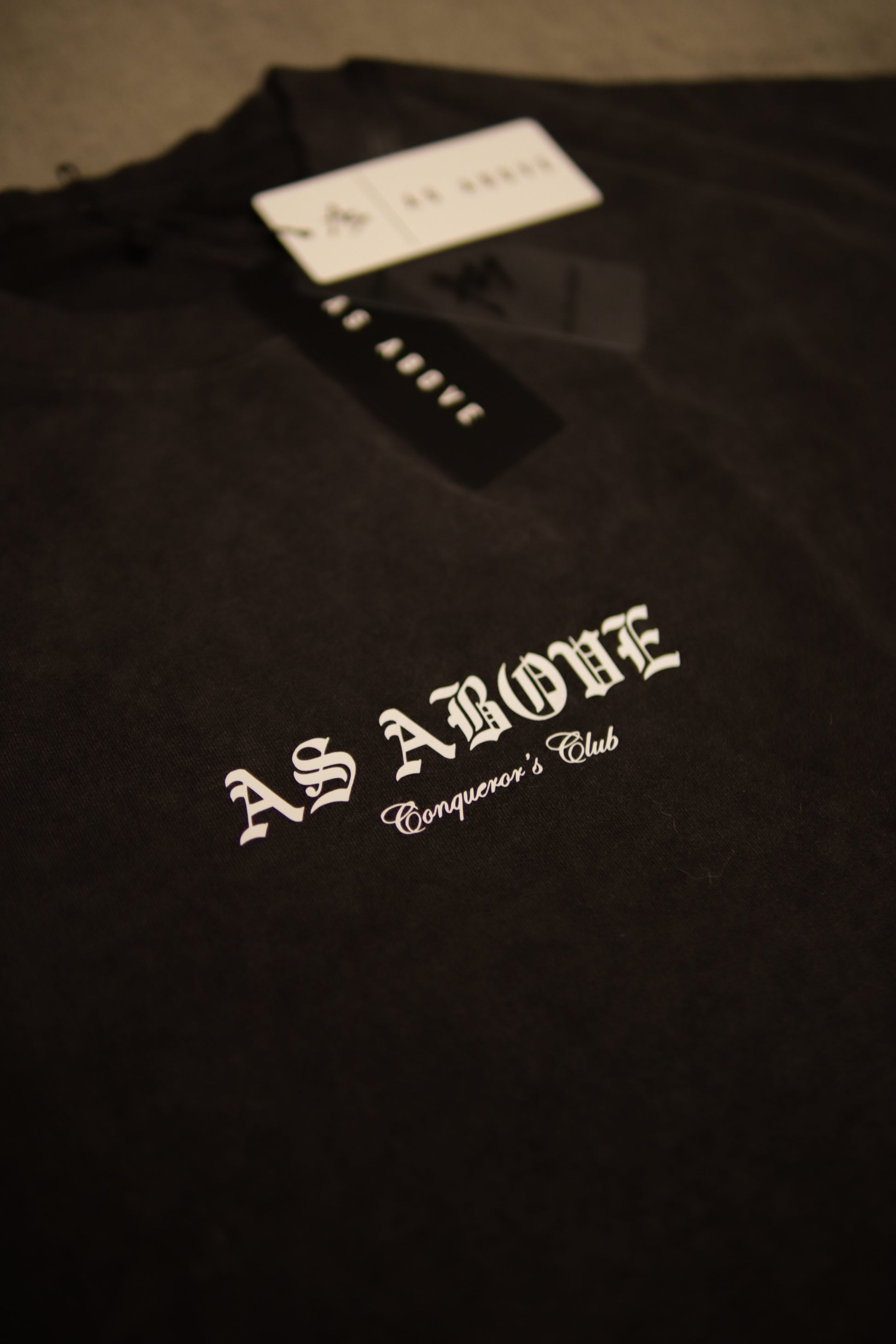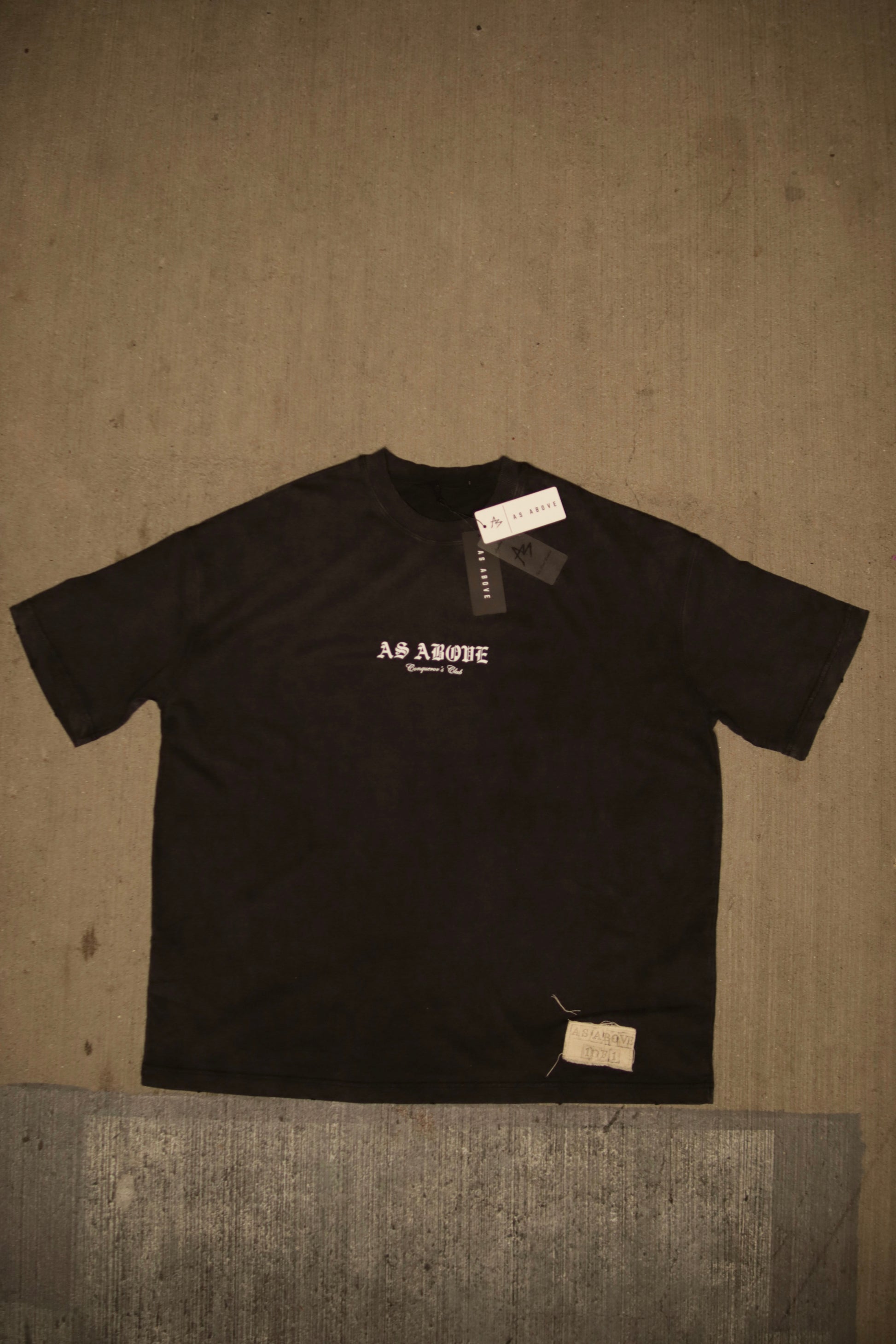 As Above 1 Of 1 Olde English T-shirt 10.0 oz French terry Cotton with distressing on the bottom hem, sleeves, and collar